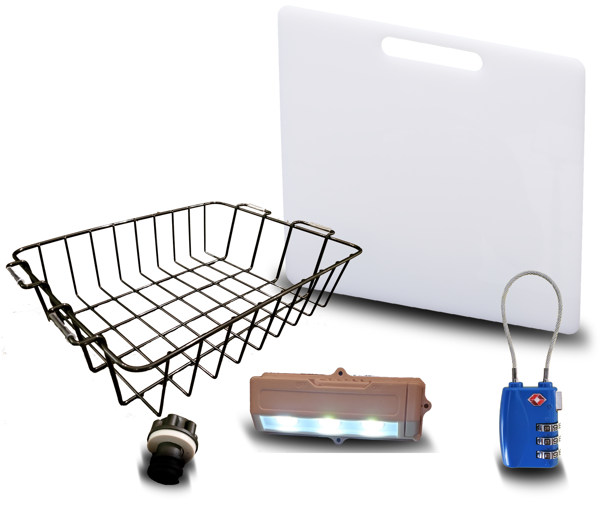 Blue Coolers Accessory Kit - Divider/Cutting Board, Basket, Lock, Light, & Plug for Coolers