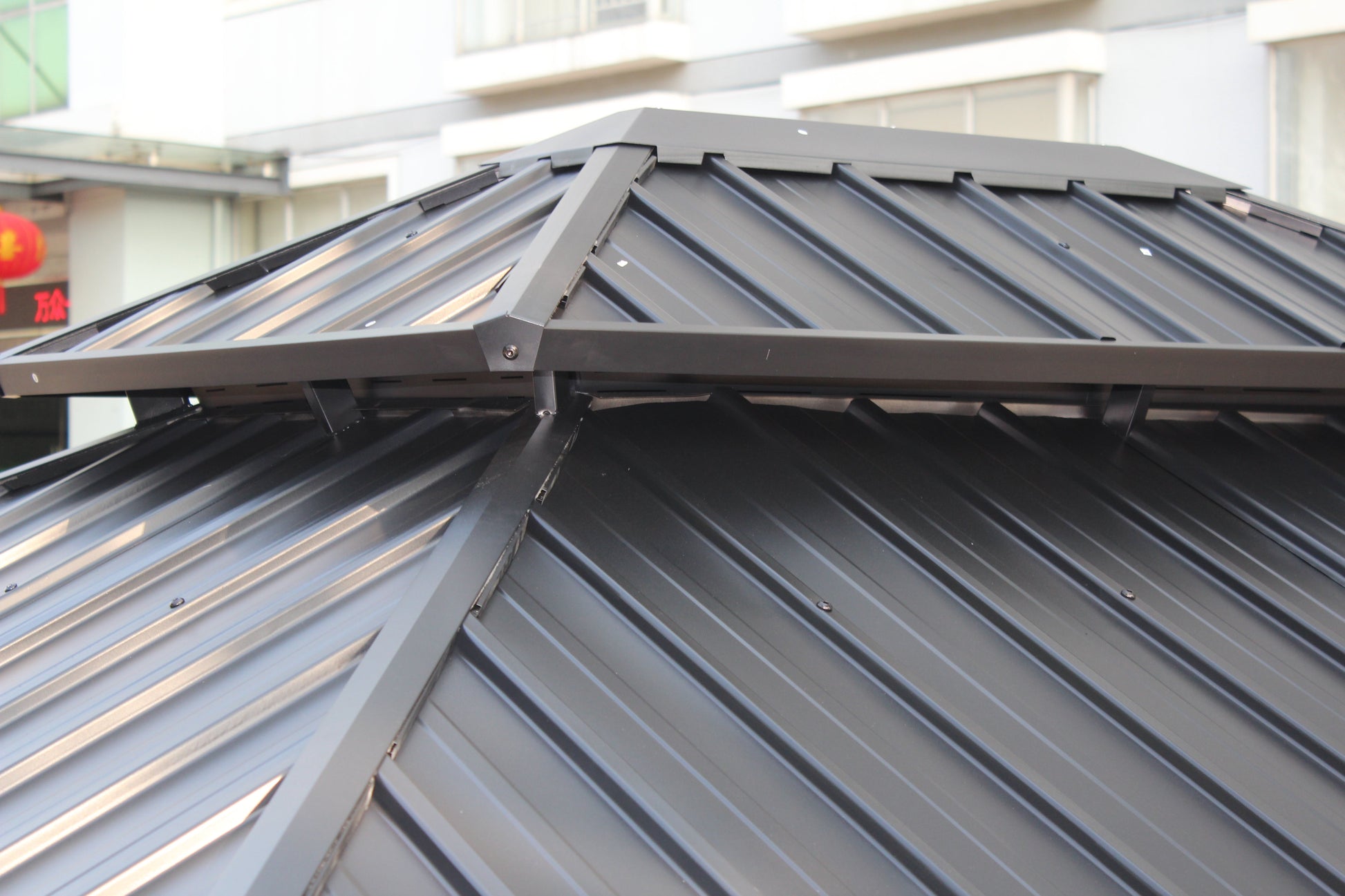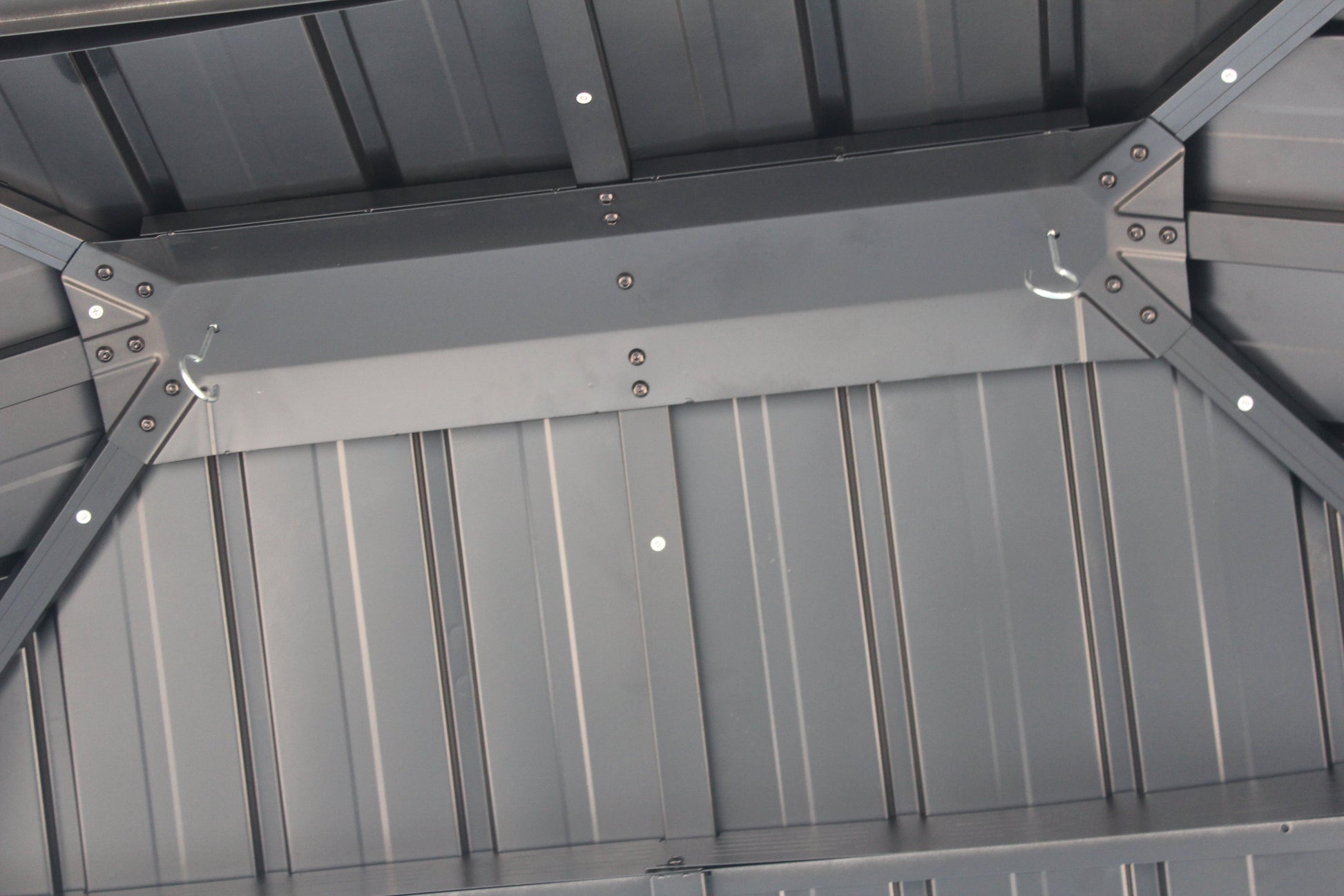 【Galvanized Steel Roof】Double-roof is all made from galvanized steel plates. It provides protection from the sun and a safe place from the rain. The angled design also make rain and snow fall faster with smooth surface.