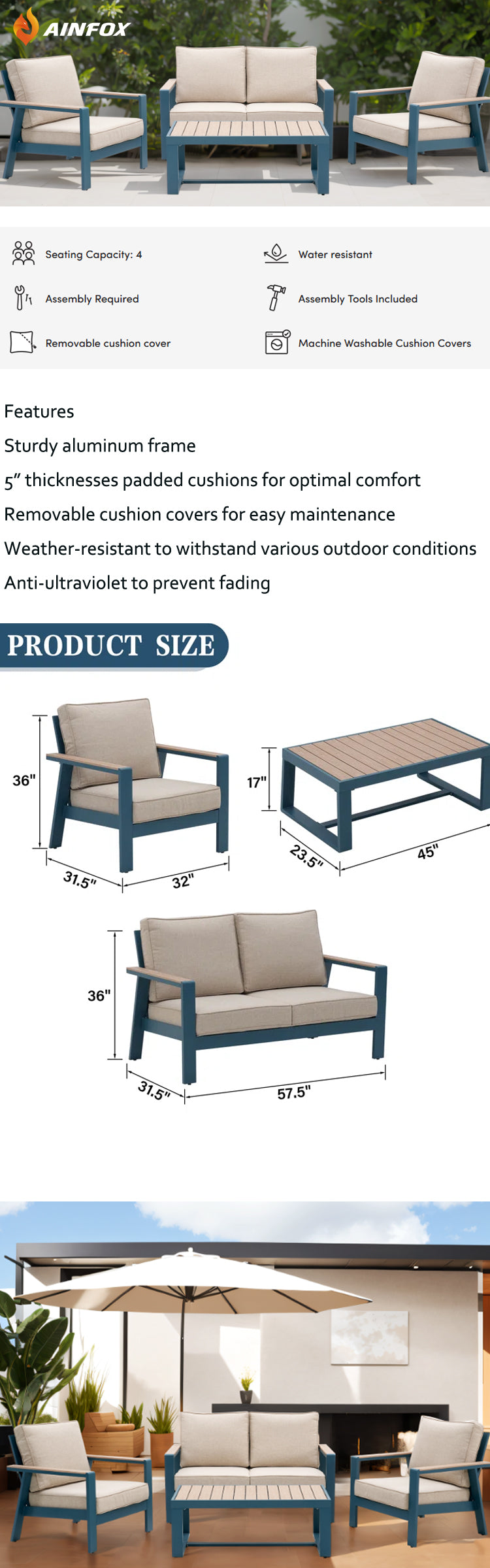 Ainfox Elegant Aluminum Outdoor Patio Sofa Set For Indoor & Outdoor