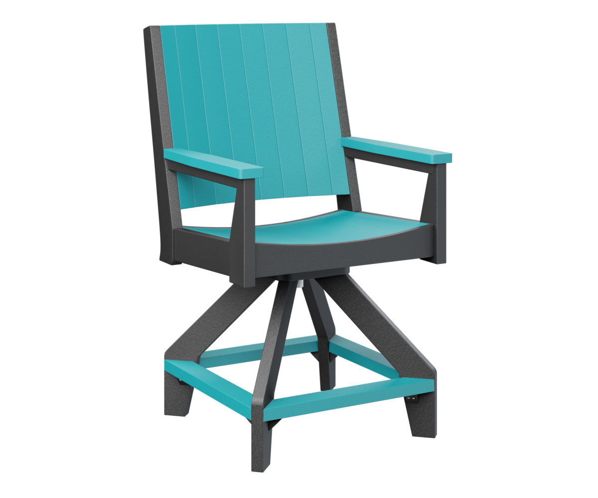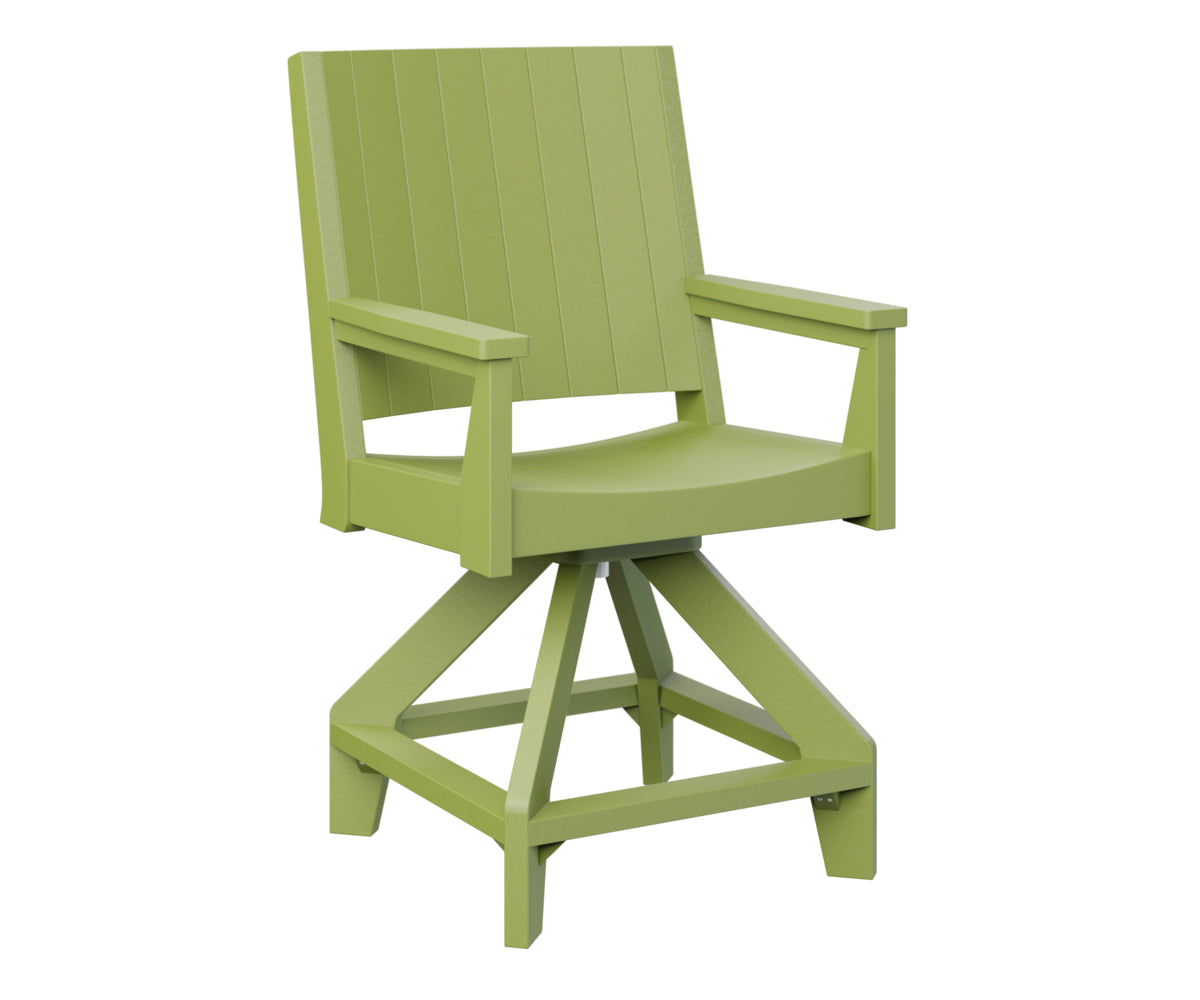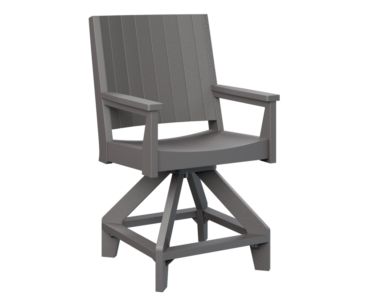 Bring sleek motion to your outdoor counter-height seating with the Berlin Gardens Mayhew Chat Swivel Counter Chair. Featuring a smooth 360° swivel, clean lines, and wide armrests, this chair blends modern design with functional ease. Crafted from fade-resistant poly lumber and handcrafted in the USA, it offers all-weather durability and low-maintenance performance—perfect for patios, outdoor kitchens, or balcony bars.