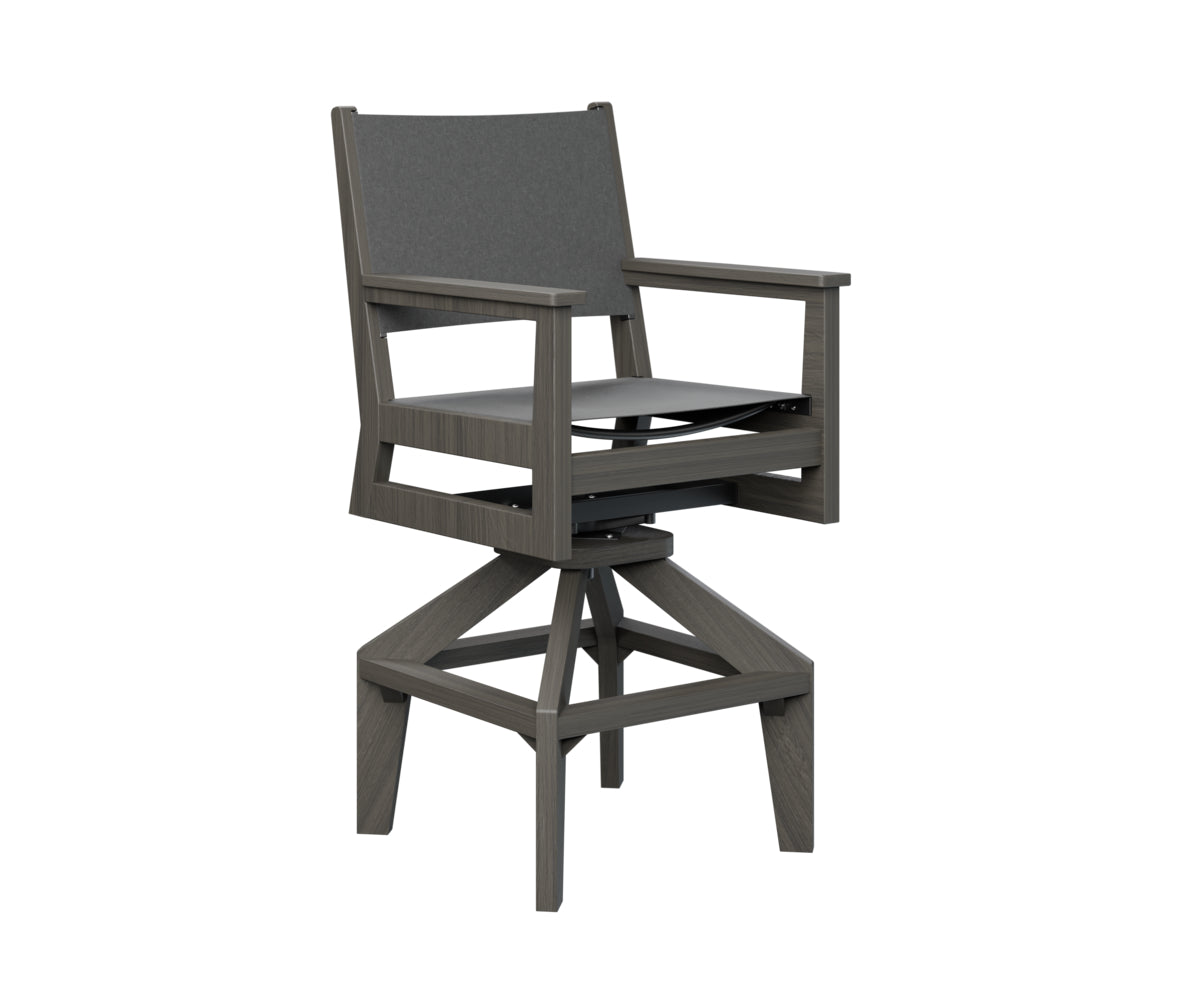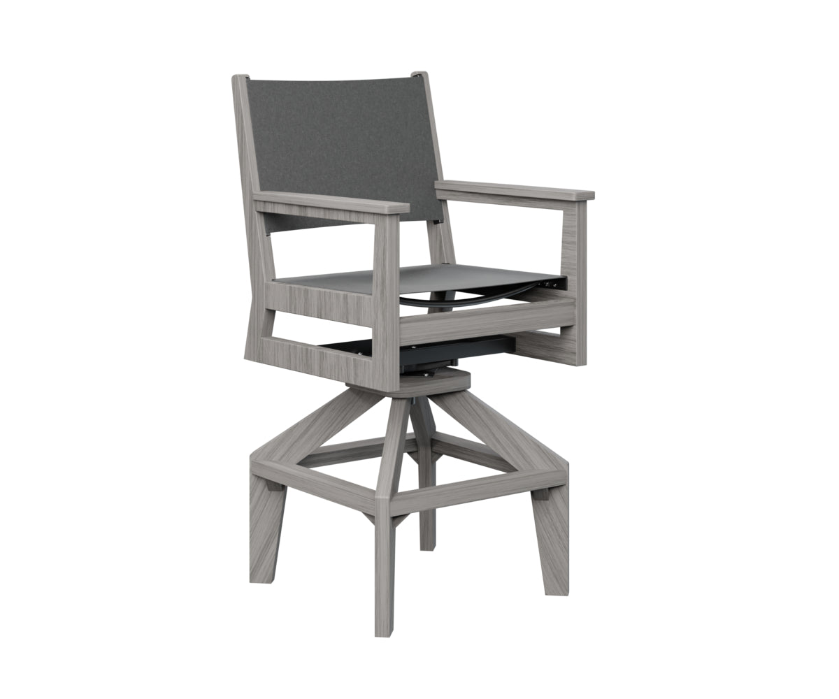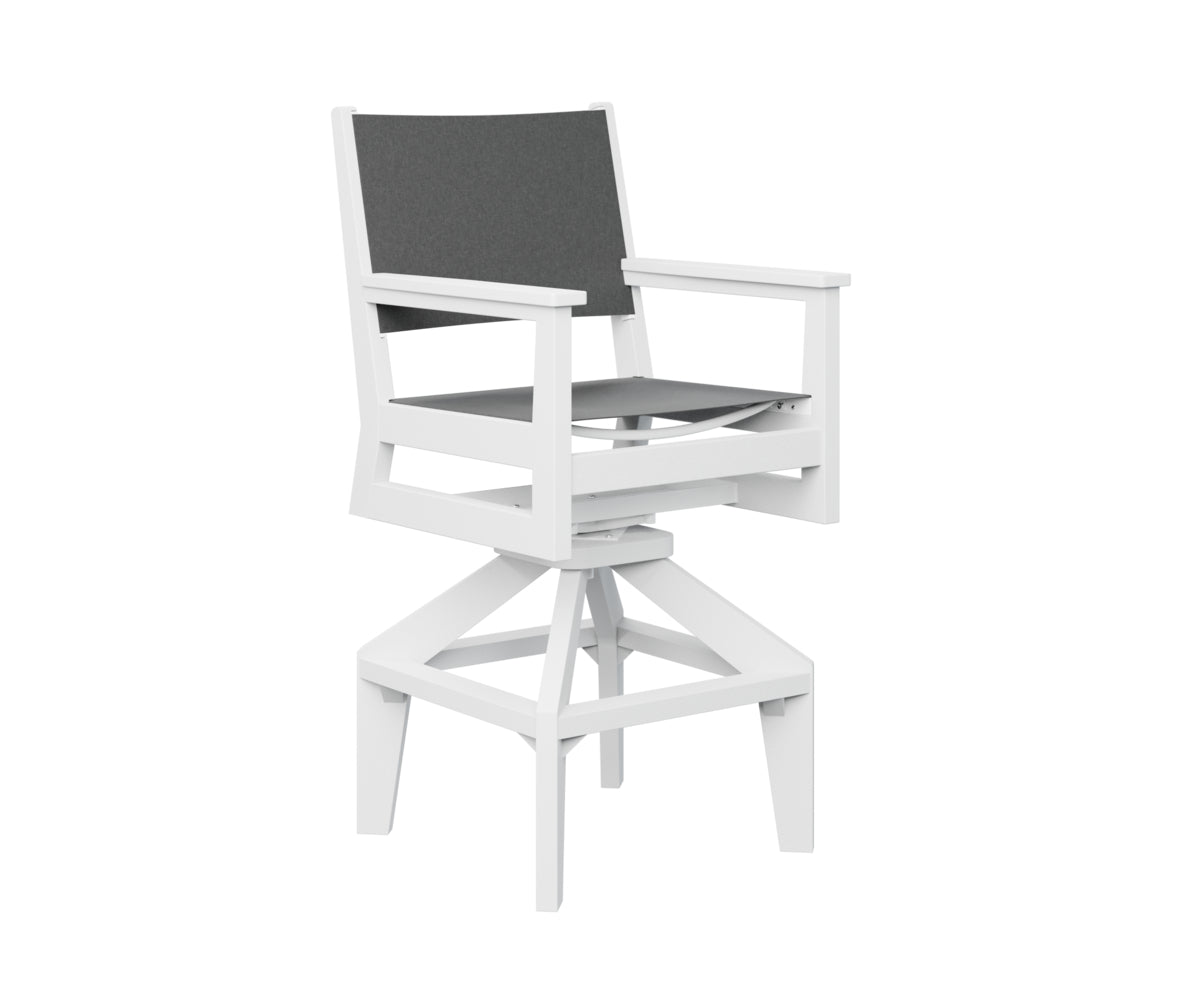 Take your outdoor entertaining to new heights with the Mayhew Sling Swivel Bar Height Chair from Berlin Gardens. Crafted from fade-resistant poly lumber and featuring a breathable sling seat, this chair offers smooth 360° swivel for easy movement and elevated comfort. Handcrafted in the USA, it’s perfect for outdoor bars, balconies, or high-top patio tables where style meets function.