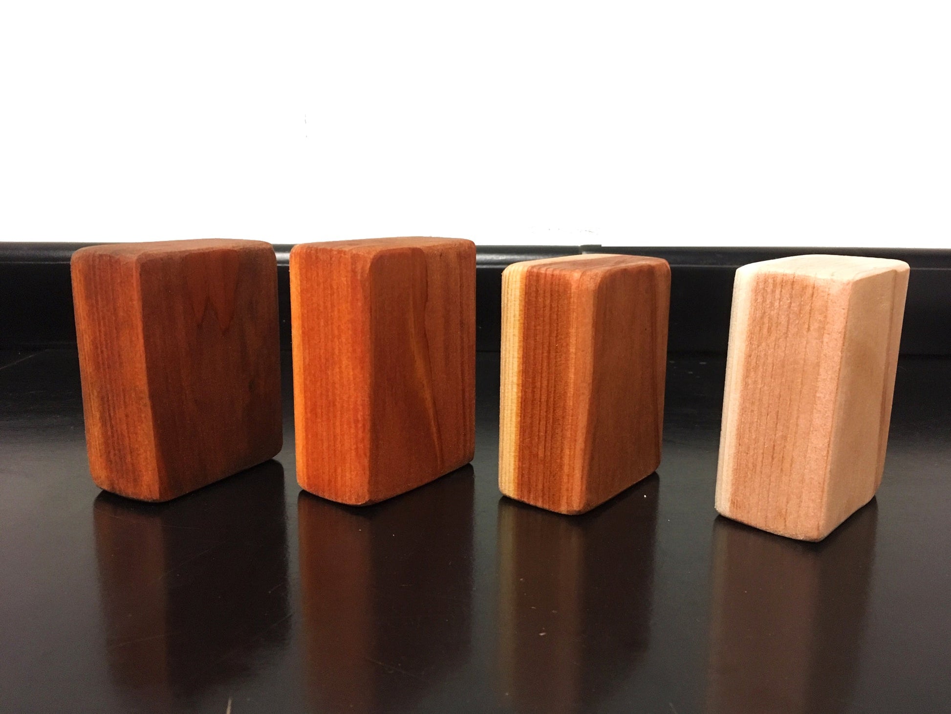 We understand that choosing the premium stained or no stain sealant for your redwood product is very important, so we offer our clients a sample kit, so you can make the perfect choice. Best Redwood offers 4 types of Redwood Finishes in our wooden products. Here are images showing the different types of redwood sealant options applied. From left to right: Mission Brown, Pacific Redwood, Natural stain and No sealant finish.