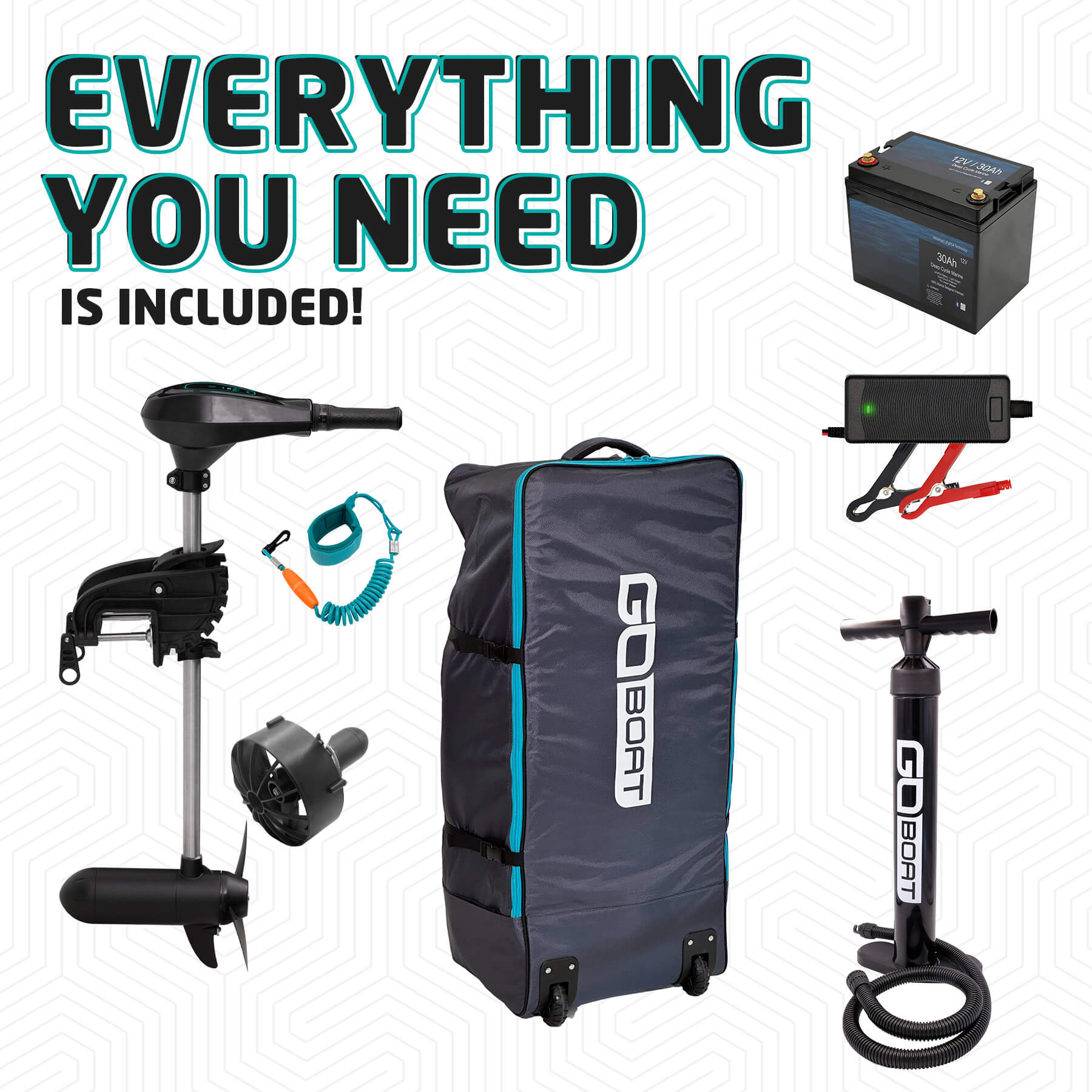 The GoBoat is fully electric and uses our proprietary electric motor specifically made for the GoBoat. The robust 12V, 35lbs thrust motor will move the craft at a brisk 5mph. The 5-speed motor ranges from 1 to 5 mph depending on the speed setting. The higher the speed, the higher the draw on the battery, with the range estimated based on normal use on and off the throttle.