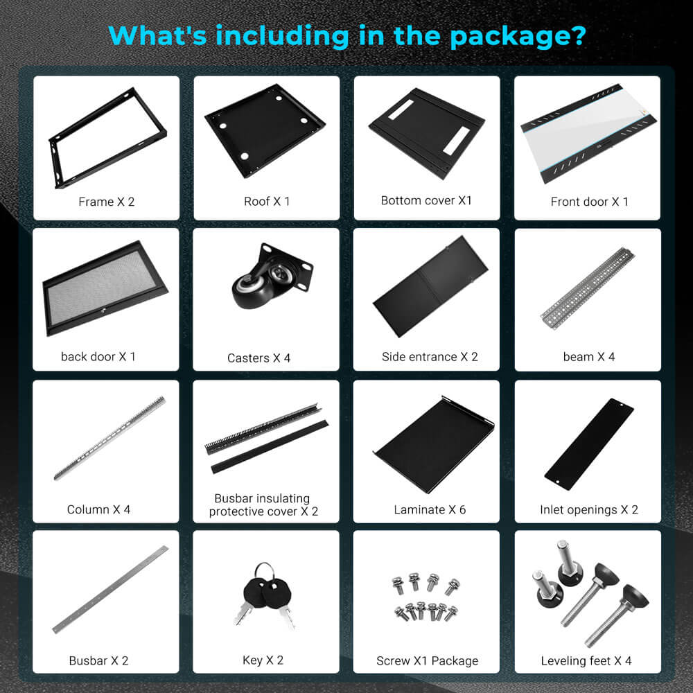 - Holds up to six rack-mount lithium batteries, providing clean, organized, and scalable energy storage for home or commercial ESS systems.