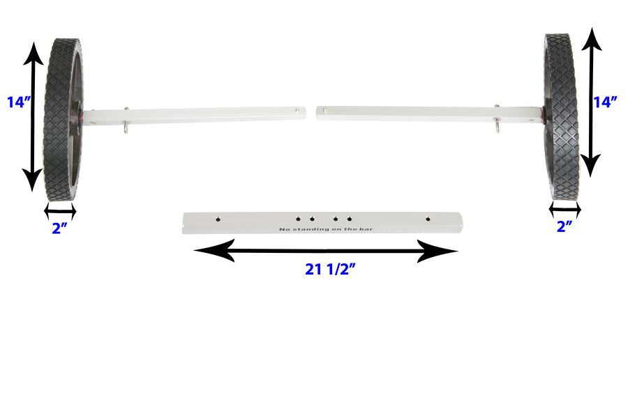 This simple to use and easy to assemble cart wheel system fits under our Sea Eagle Kayaks, SUPS, PaddleSki, 285FPB, and 375FC FoldCat. It allows you to roll your Sea Eagle from where you inflated it to where you launch it. Packs down for easy transport. Not recommended for our heaviest boats or with boats carrying an 8 or more horsepower engine. Weight limit of 125 lbs. Wheel diameter 14" x 2" wide. Includes two straps.