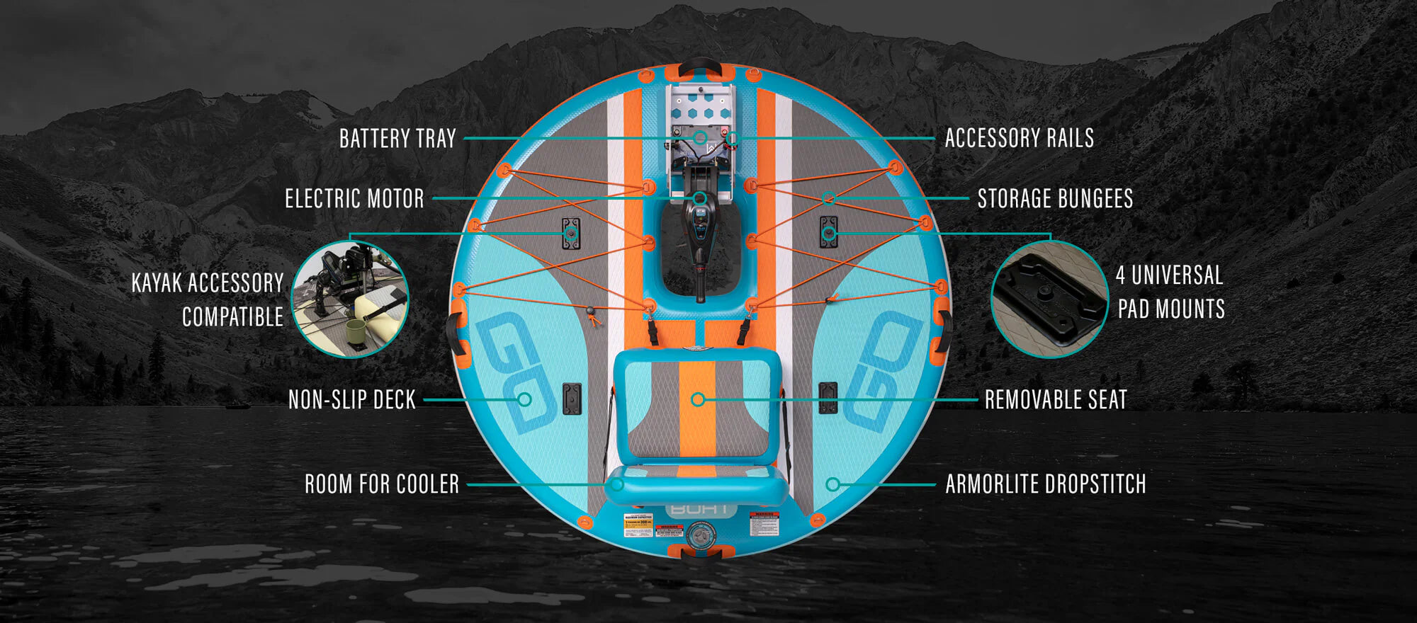 The GoBoat may be light and compact, but it packs a mighty punch. Its round design adds a level of stability you can't get in other watercraft. Stand up, walk around, we've got you.