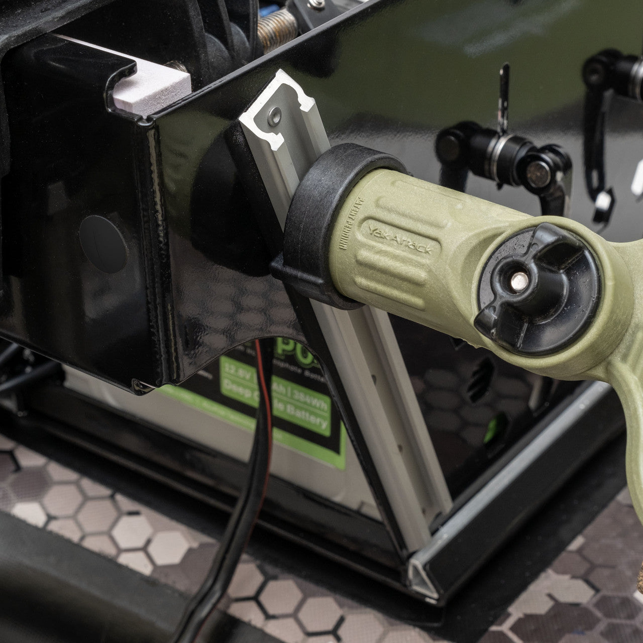 The GoBoat is fully electric and uses our proprietary electric motor specifically made for the GoBoat. The robust 12V, 35lbs thrust motor will move the craft at a brisk 5mph. The 5-speed motor ranges from 1 to 5 mph depending on the speed setting. The higher the speed, the higher the draw on the battery, with the range estimated based on normal use on and off the throttle.
