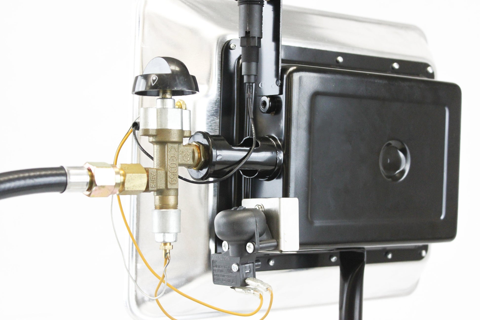 Mounts directly to a 20, 30, or 40 lb propane tank (sold separately) with a standard QCC connection and regulator-no electricity required. Just connect, ignite with the Piezo push-button starter, and adjust the flame to your comfort level.