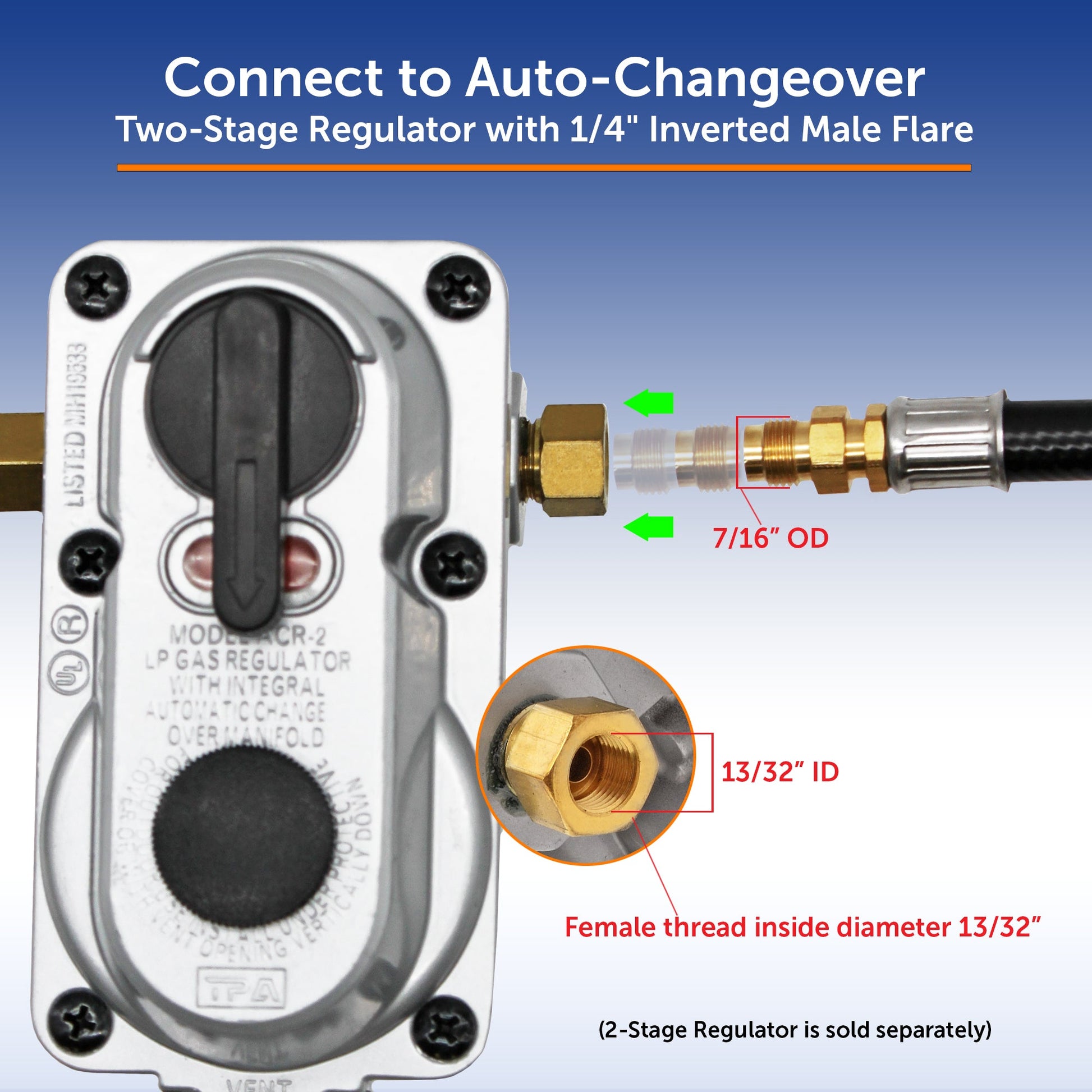 - Fittings: ACME (Type 1/QCC) Nut x 1/4" Inverted Male Flare