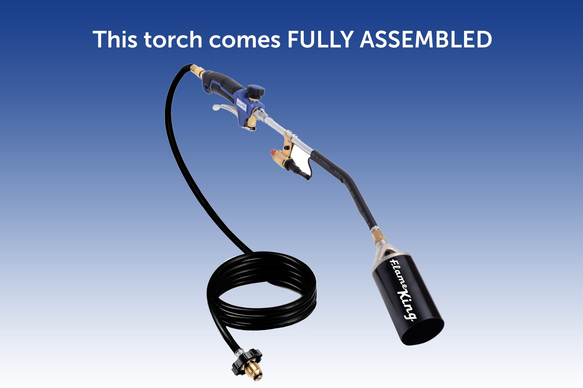 This propane torch arrives fully assembled and ready to use right out of the box. The included 10-foot hose extends your reach so you can cover more ground and access tight spots without dragging your propane tank around.