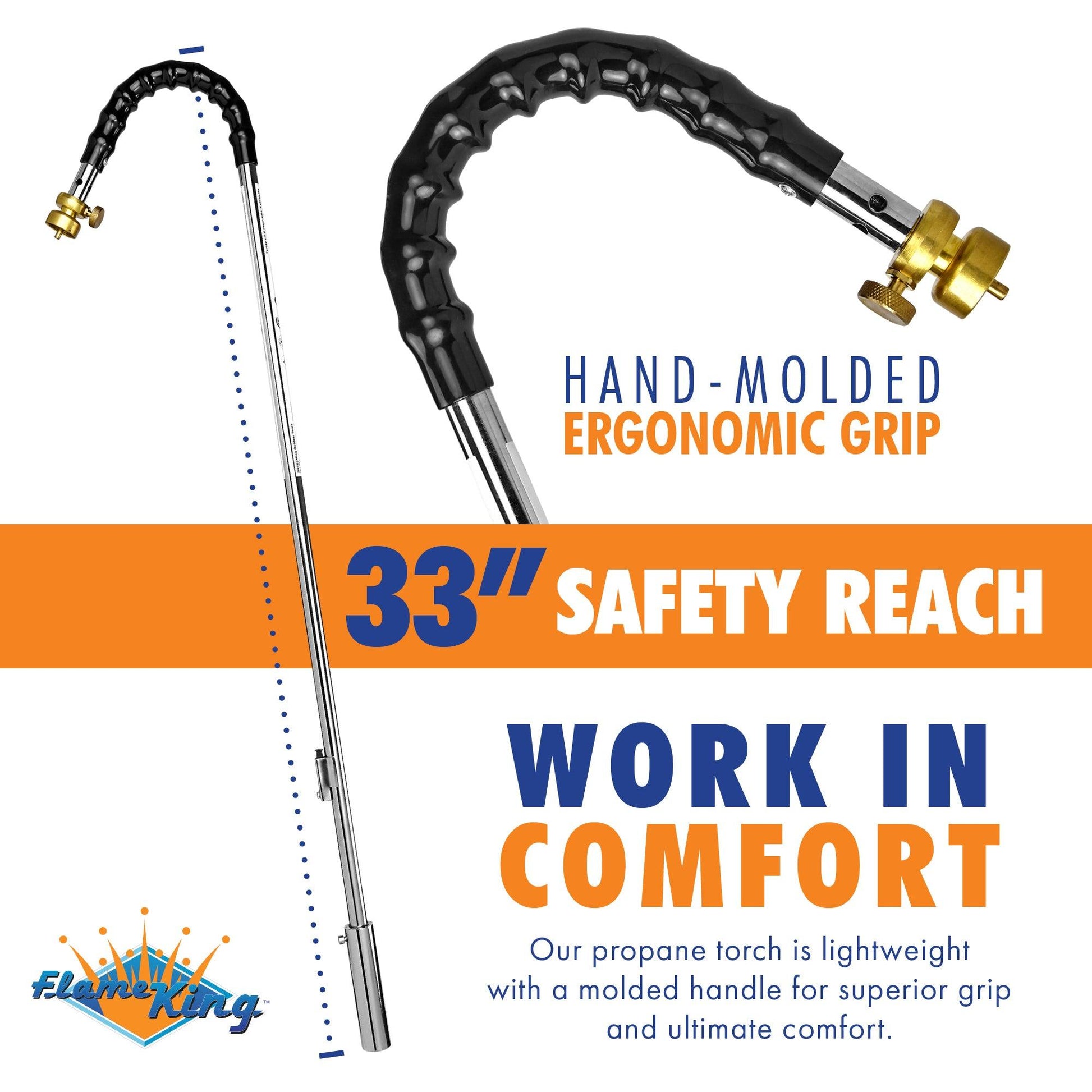 The non-slip rubber handle offers a secure, comfortable grip for extended use, while the 33-inch length keeps you at a safe distance from the flame.