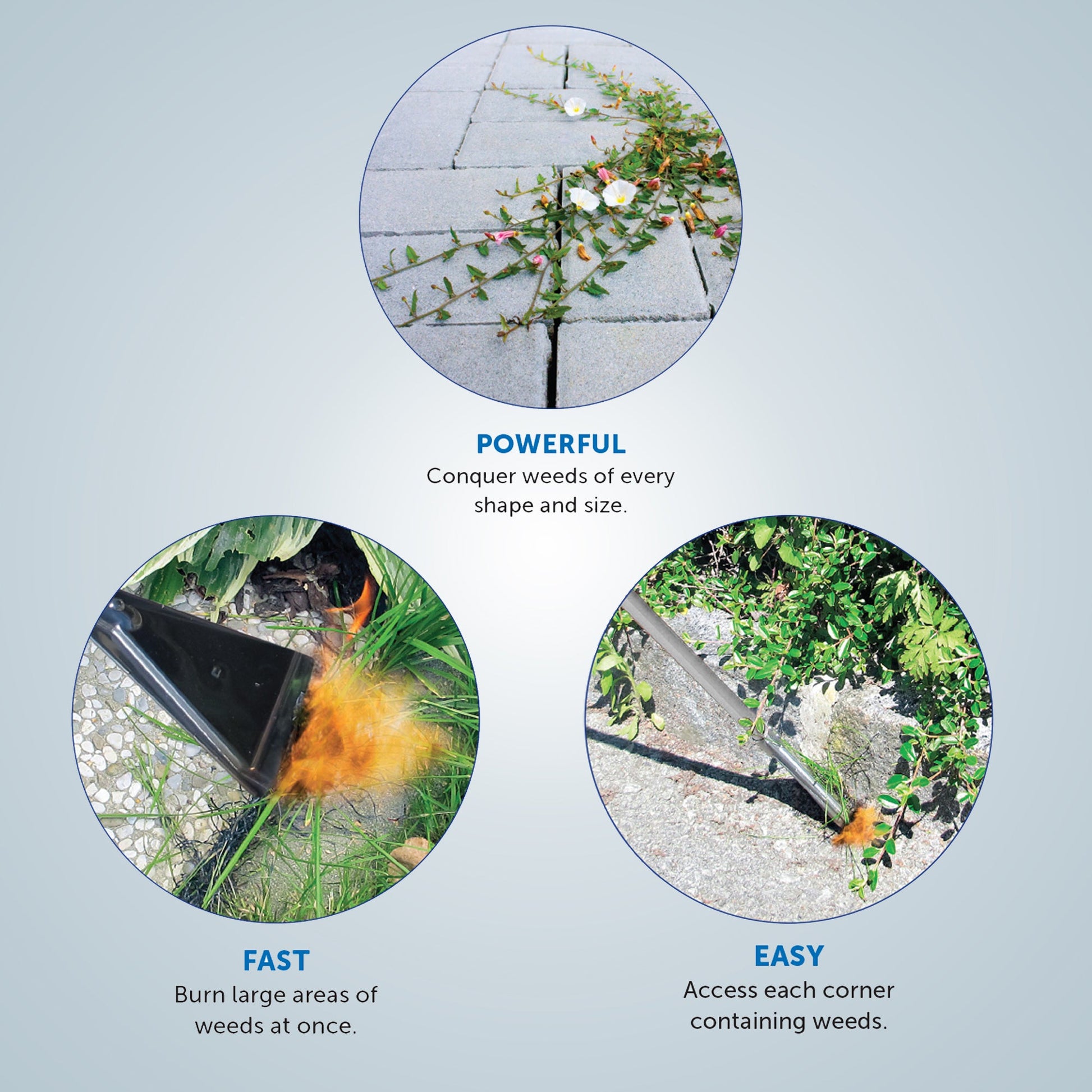 The wide burner tip is specially designed to treat larger surface areas with each pass-perfect for asphalt, gravel, and garden beds-so you spend less time working and more time enjoying your space.