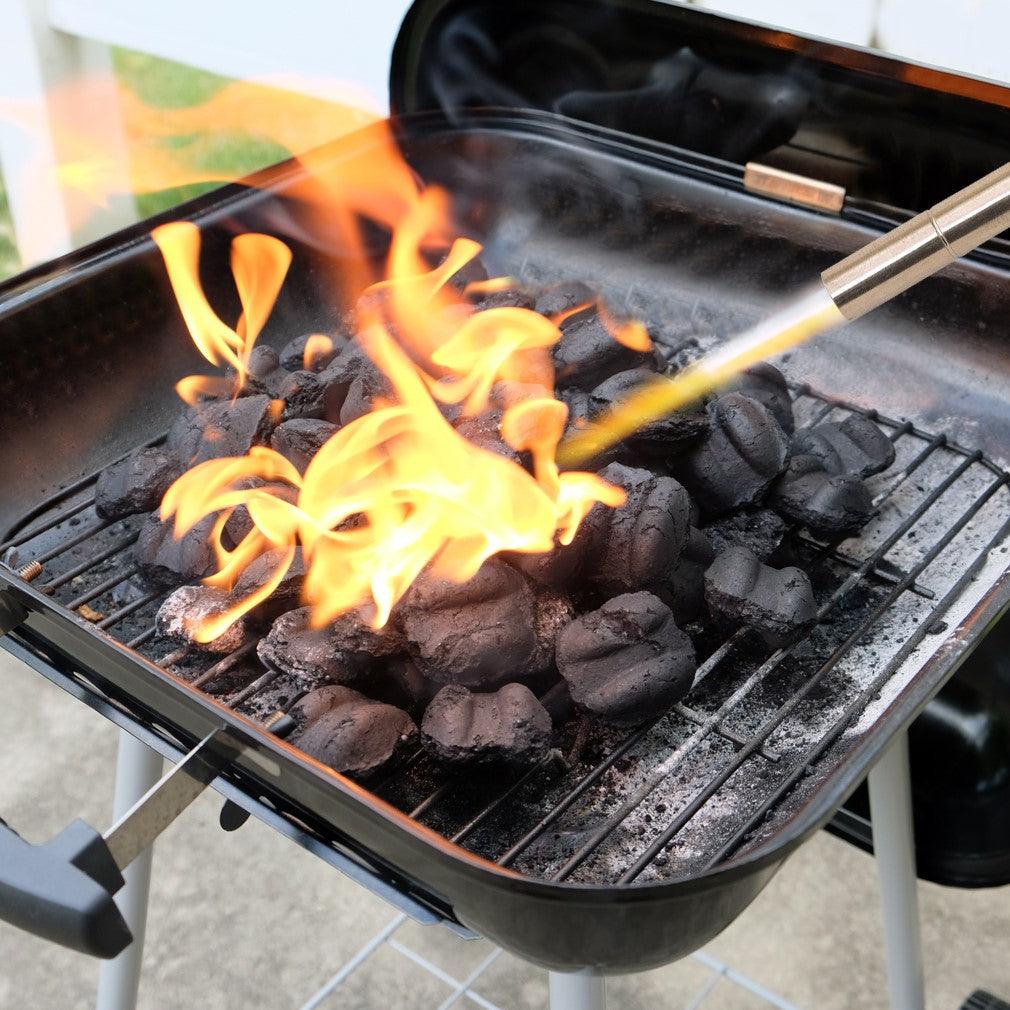 The torch head is designed with one handed use in mind. The cast aluminum body is durable, and the flame adjustment knob easy to use. On-off switches and ignition trigger are easily reachable by a single finger without having to shift your grip. You can also use it hands free! After stabilizing the canister in a tip free base on a level surface, use the Lock Up Flame Control to keep a steady burn while you work. We recommend using a single shield between you and the flame.