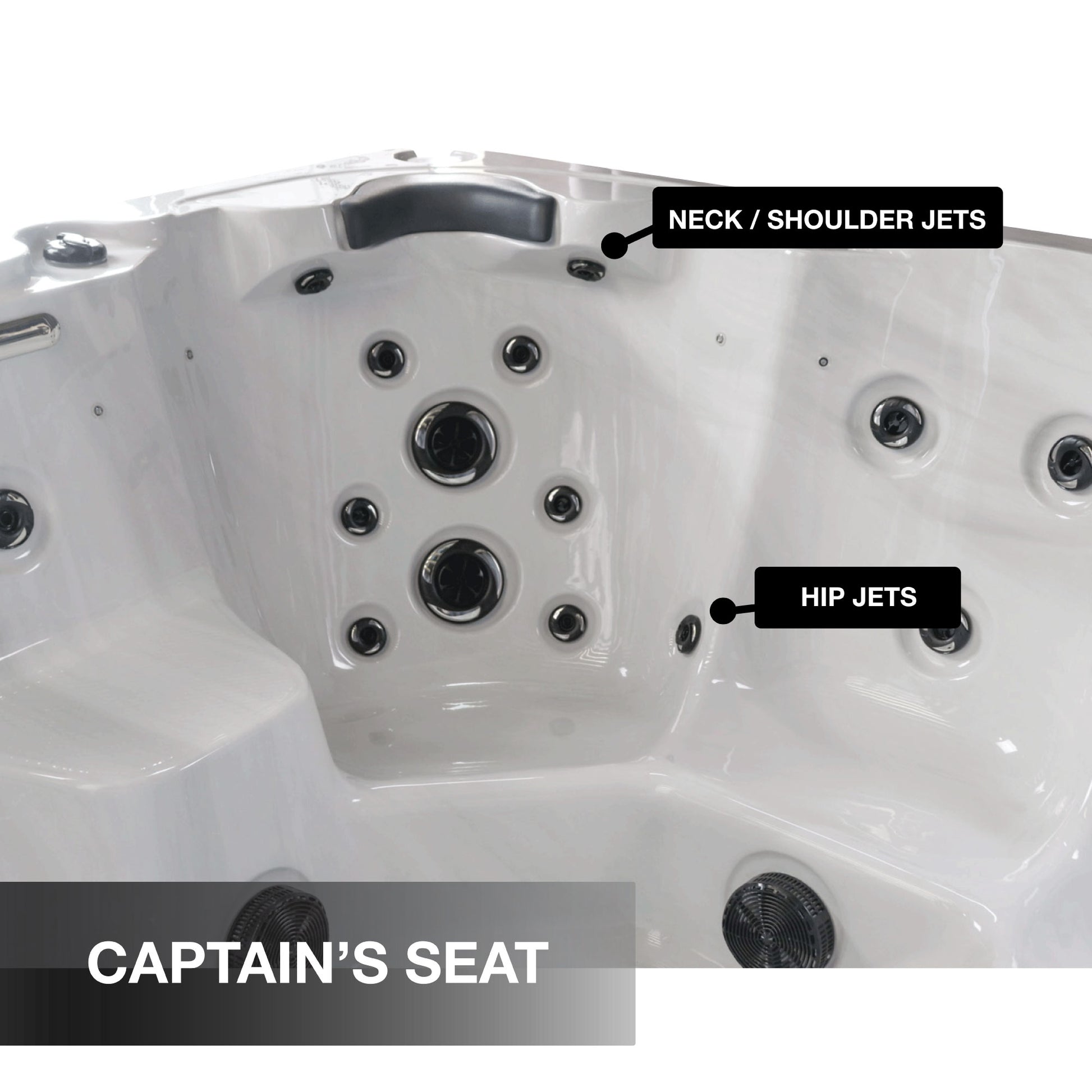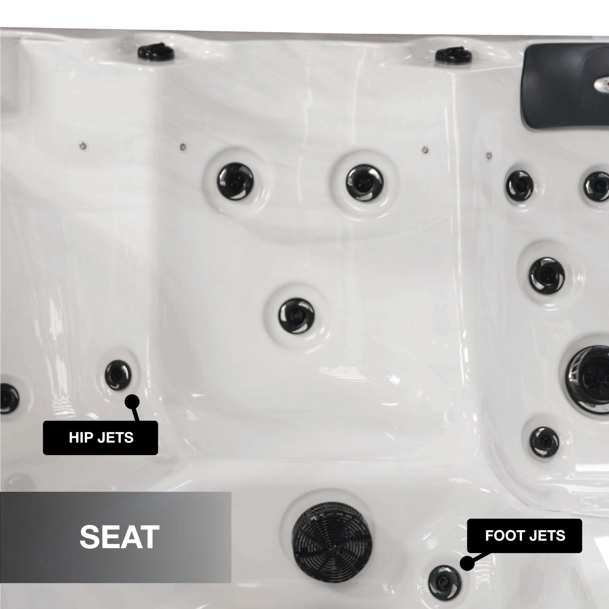Adjustable & Interchangable Jets and Multi-speed Pump(s) Massage and Directional Black Ice jets in 3 sizes. Adjust using the control center and air control dials. Turn the jet faces and interchange jet positions to customize the hydrotherapy experience of each seat