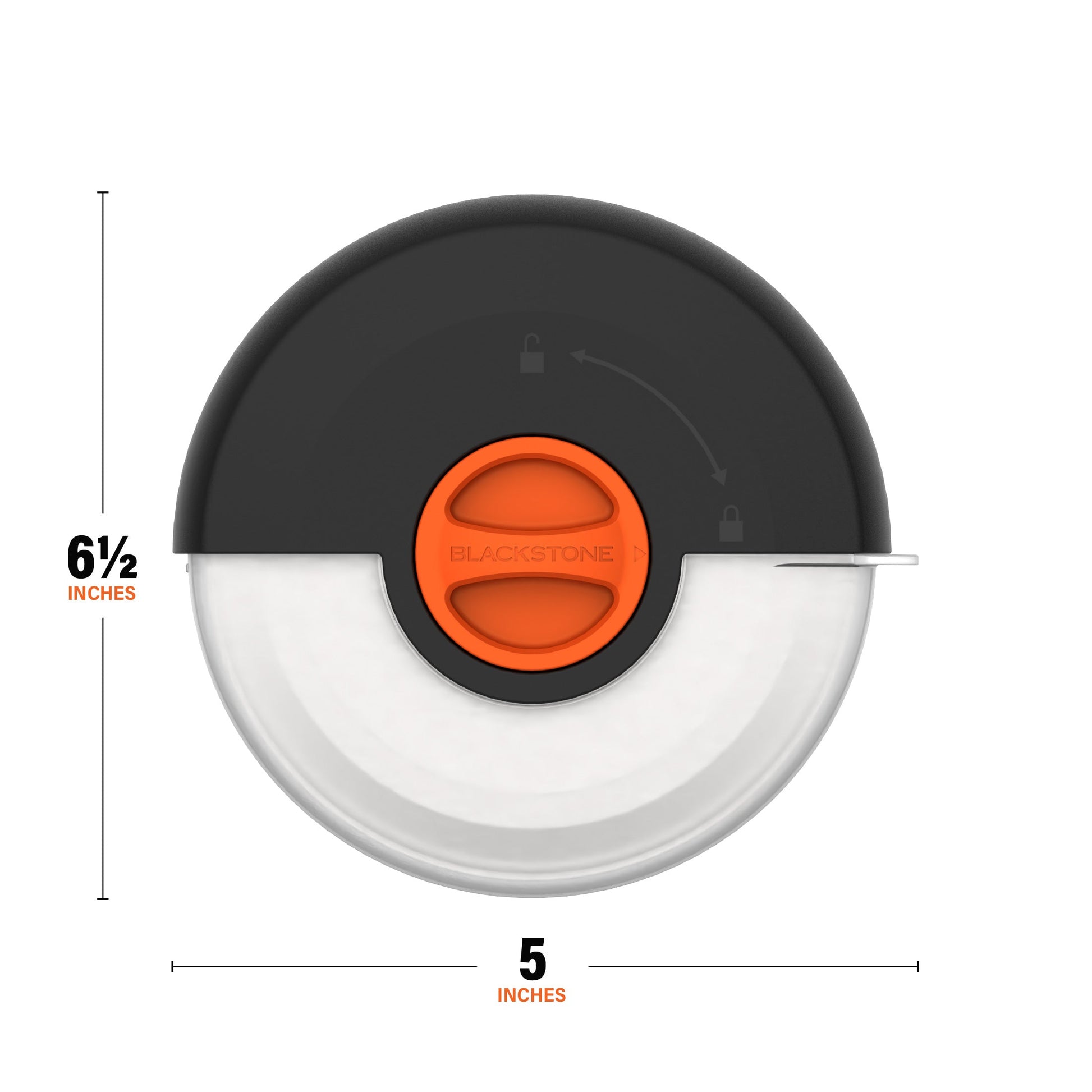 - Slice up your newest pizza creation with Blackstone's Pizza Cutting Wheel. This ergonomically designed pizza cutter allows you to have greater control over the movements of the blade when cutting through pizza crusts, pastries, and more! Once you're done with dinner simply twist the orange center piece to dismantle the cutter and toss it in the dishwasher (top rack recommended) for an easy clean-up. Once cleaned, put put the pieces back together and slide the protective sheath into place for safe storage.