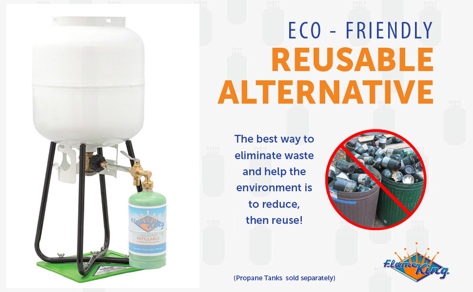 At Flame King, protecting the planet is at the heart of everything we do. That's why we pioneered the first refillable 1 lb propane tank- helping you reduce waste and embrace a more sustainable way to power your outdoor adventures.