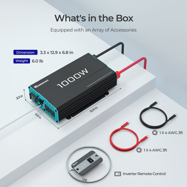 Experience the true potential of 1000W continuous output and a staggering 2000W peak power with the Renogy Inverter. Delivering unparalleled performance, this powerful device ensures that you can confidently run your high-demand appliances and equipment off-grid.