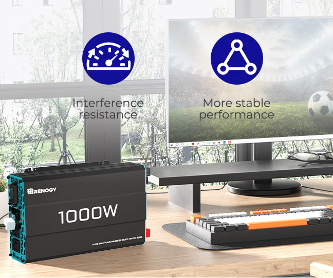 The pure sine wave output ensures a smooth and stable power supply that mimics the utility grid power, making them highly versatile and compatible with a wide range of electrical appliances. Renogy inverters work seamlessly with sensitive devices without causing compatibility issues or disruptions, prolonging their lifespan and ensuring reliable performance.