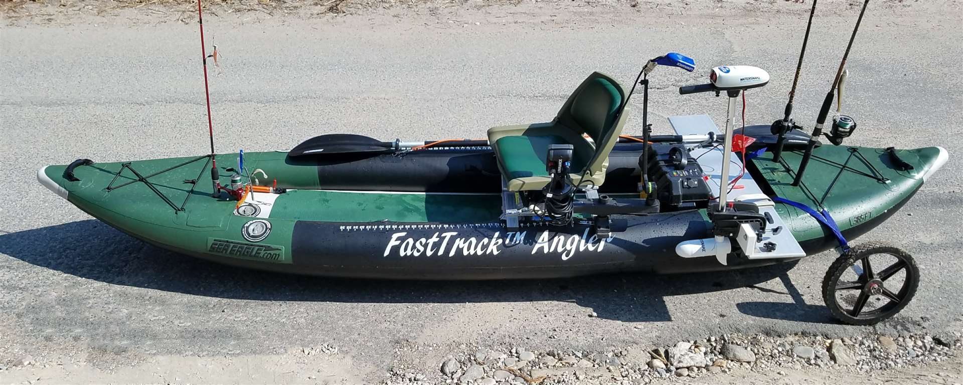 Enjoy all the features of these incredible kayaks. Including the FastTracks patented state of the art, external, rigid, inflatable keel, thicker nearly indestructible hull material, non-slip tough as crocodile hide protective padding, built-in rod, tool, hook and lure holders, built-in Fish Rulers and more! (U.S. Patent #8,286,573 2)