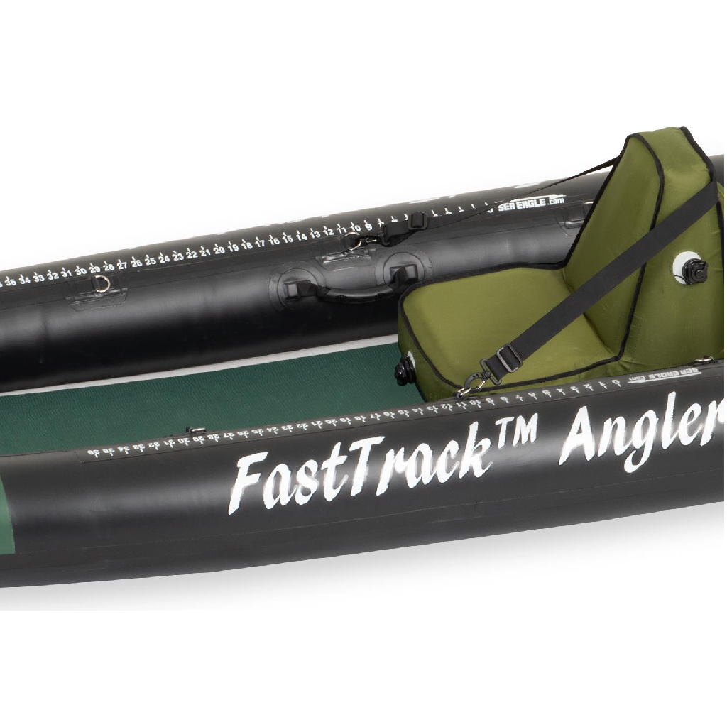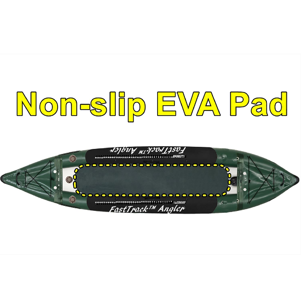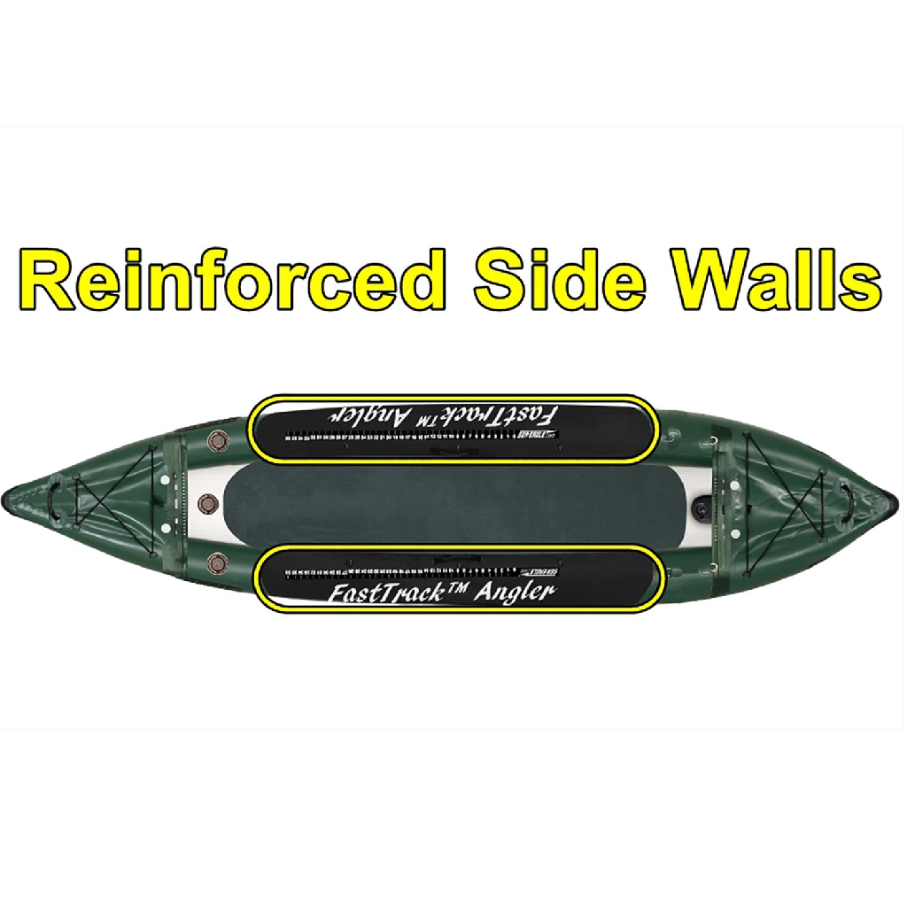 The unique external drop stitch construction inflatable keel allows the FastTrack Angler to paddle far faster and straighter than other inflatable kayaks. The keel features sharp bow and stern molds that slice through wind, waves and current for a super fast, super clean entry and exit! The inflatable bow keel also provides the buoyancy and lift needed to ride over waves and further improve speed. (U.S. Patent #8,286,573 2)