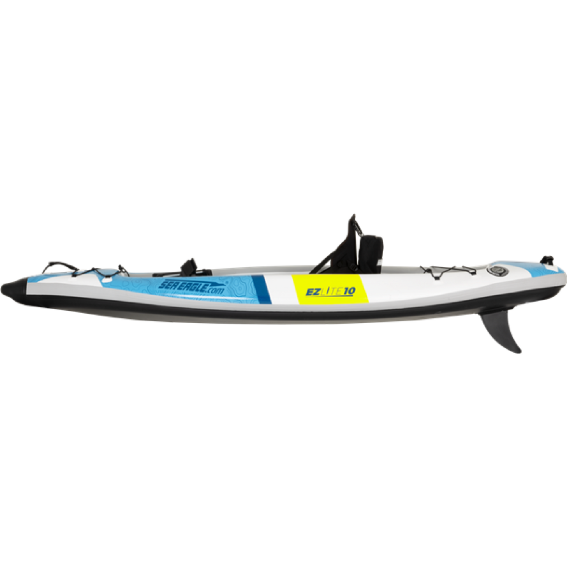 Weighing just 26 lbs., the EZLite10 is all about EASY...easy to set up, easy to carry, easy to paddle, easy to pack up, easy to store. The EZLite10 is just about the lightest and most packable solo kayak out there. The light weight does not compromise quality, durability, or performance of this kayak. The EZLite10 inflates in under 3 minutes, paddles easily up to 5 mph, and can reach 6 mph.