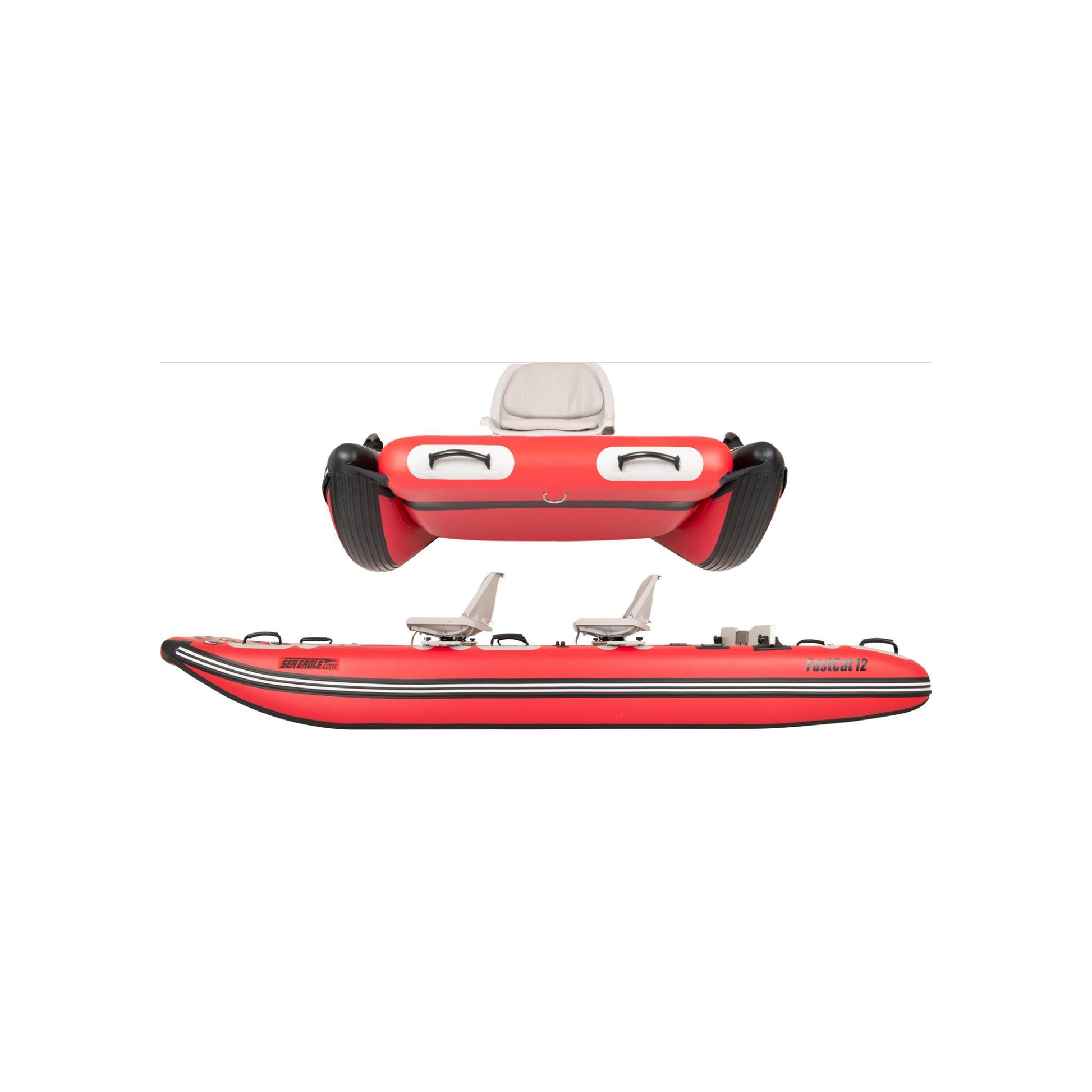 The FastCat12™ is a rugged, dependable, rigid, high-pressure, all-drop stitch constructed, rapid self-bailing, two-person, inflatable, FastCat12™ Catamaran Boat that provides incredible deck space and "The Smoothest Ride On The Water!"