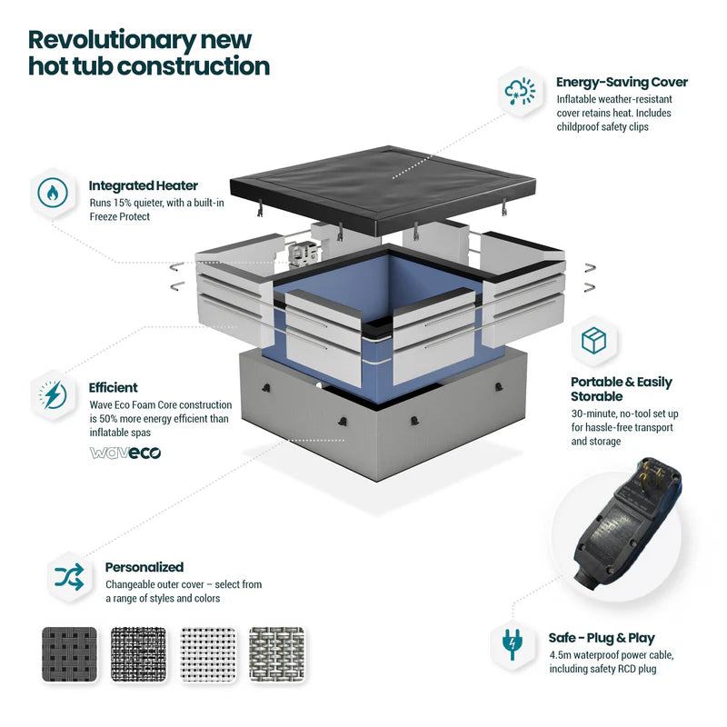 Up to 50% better at retaining heat than other portable spas, meaning you use less energy